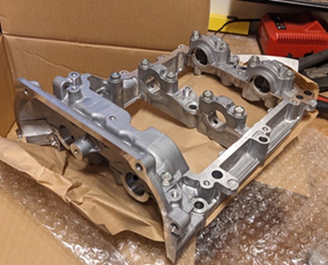 Example of the cam carrier body component of an engine block